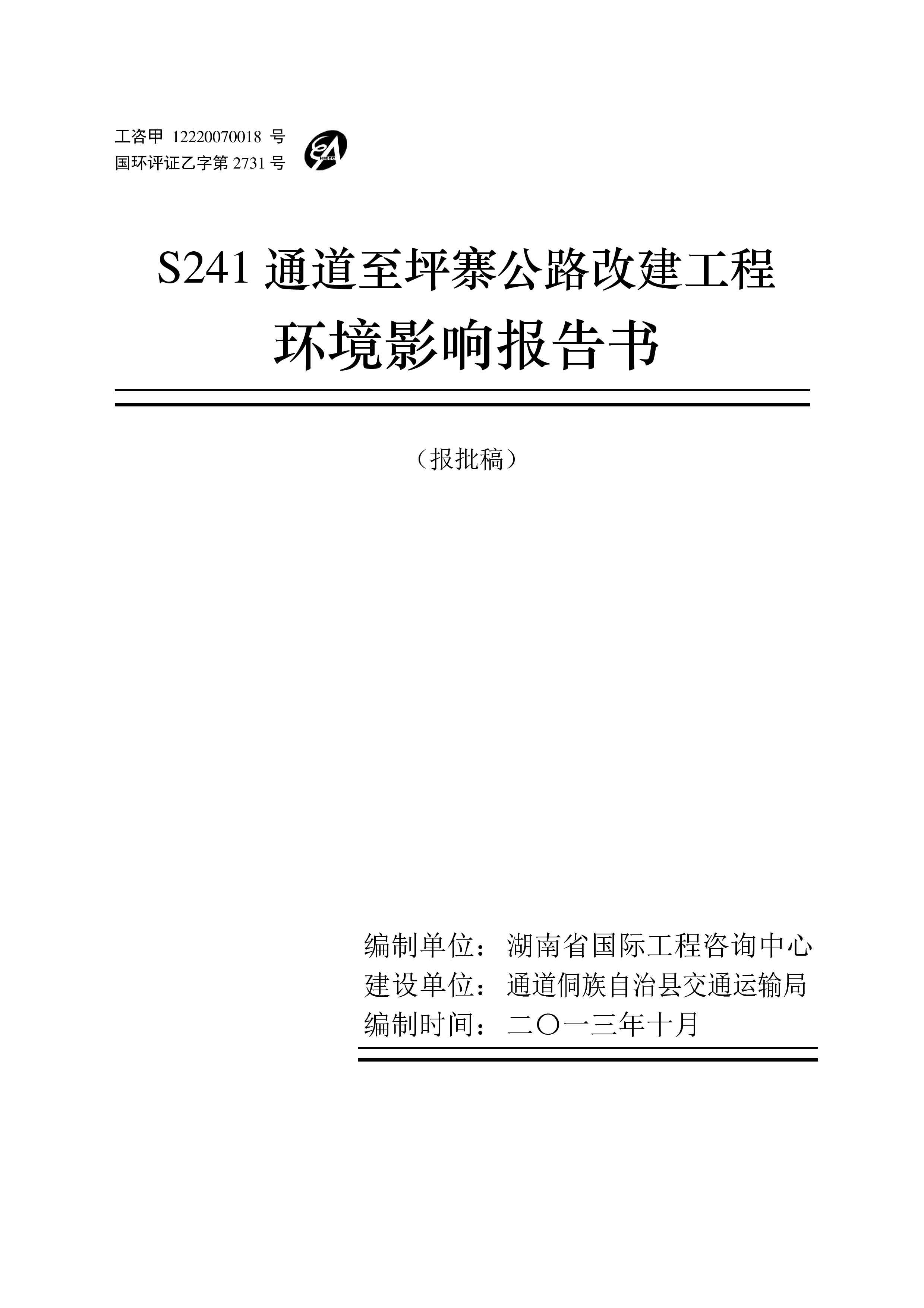 通道至坪寨公路改建工程環(huán)境影響報(bào)告書(報(bào)批稿)