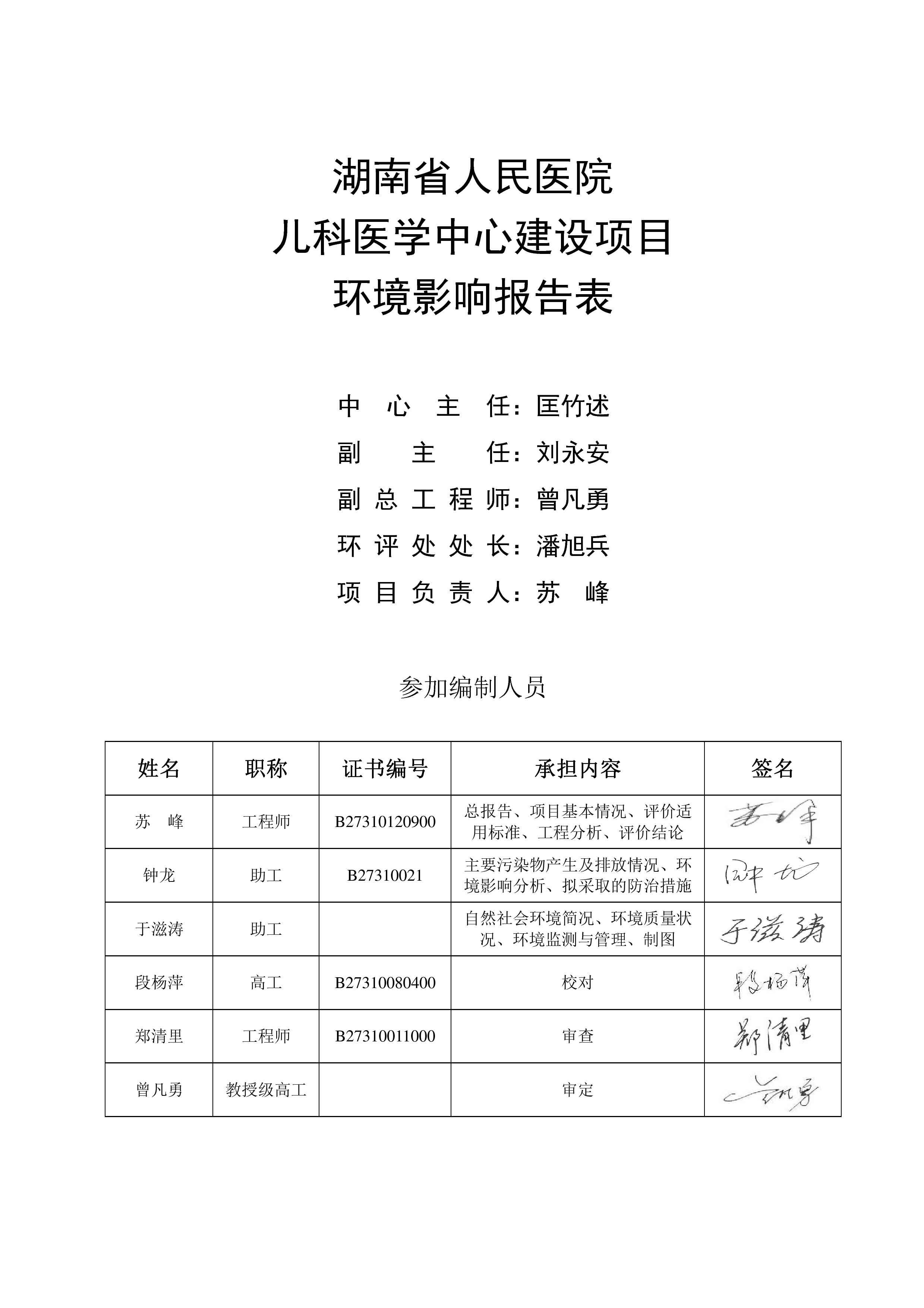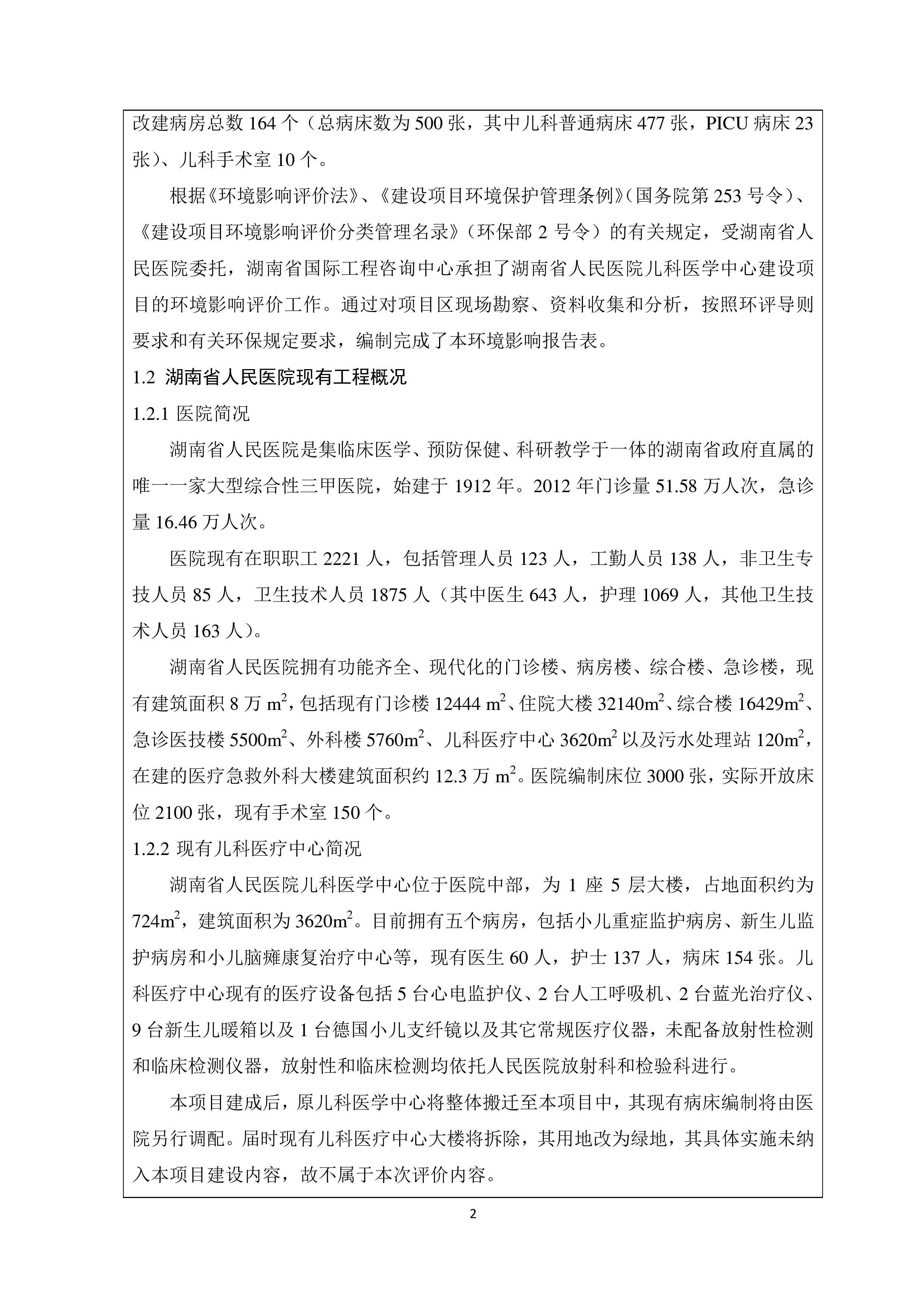 湖南省人民醫(yī)院兒科醫(yī)學(xué)中心建設(shè)項(xiàng)目環(huán)境影響報(bào)告表(送審稿)