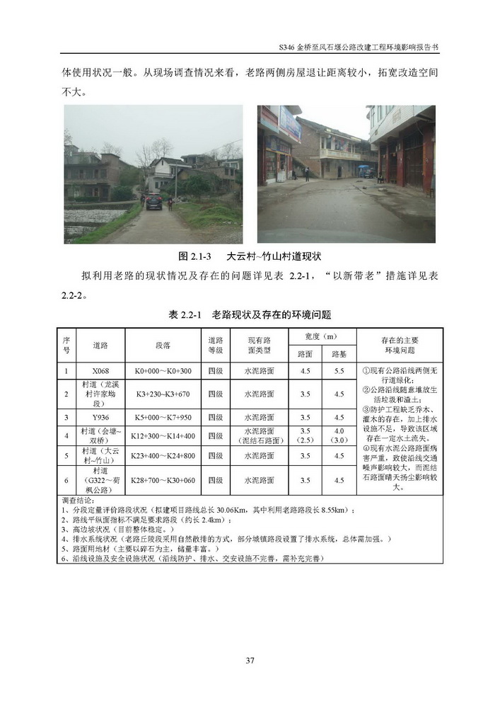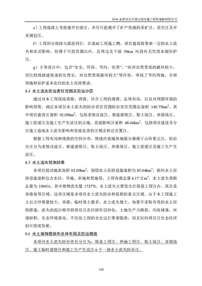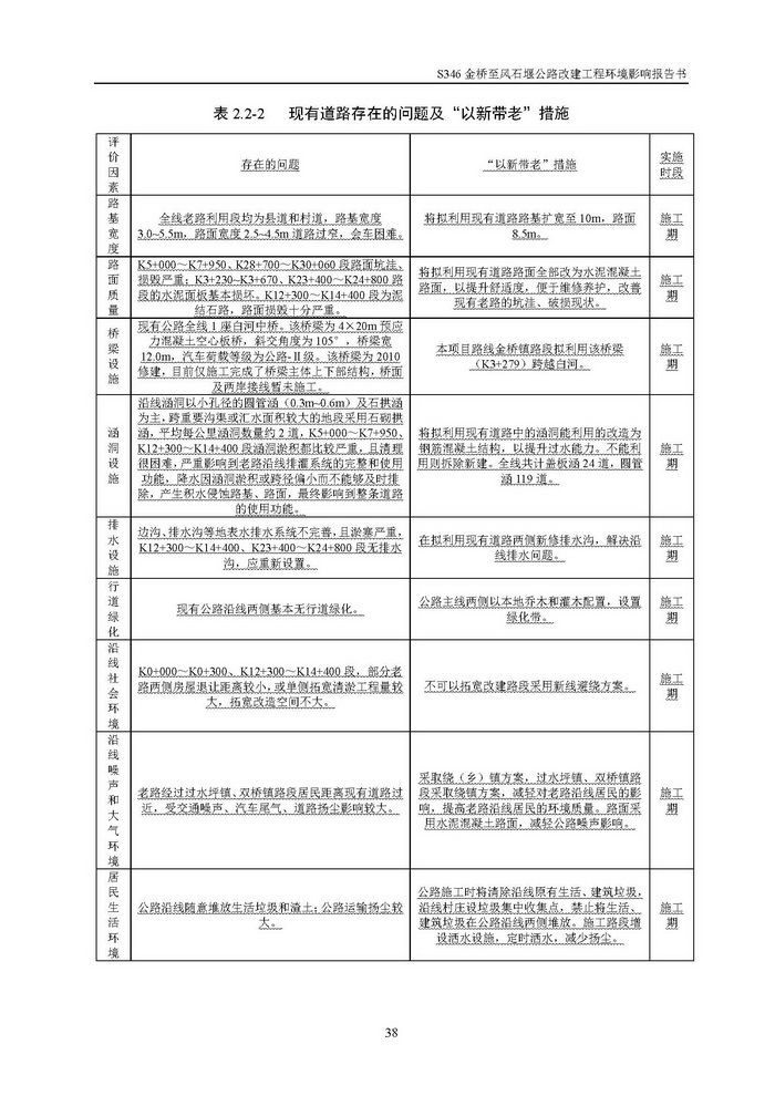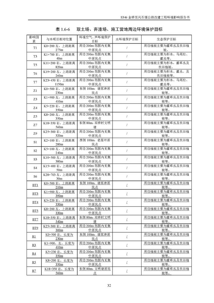S346金橋至風(fēng)石堰公路改建工程環(huán)評(報批)