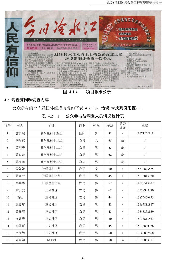 S238冷水江禾青至石槽公路改建工程環(huán)評公示(簡本)