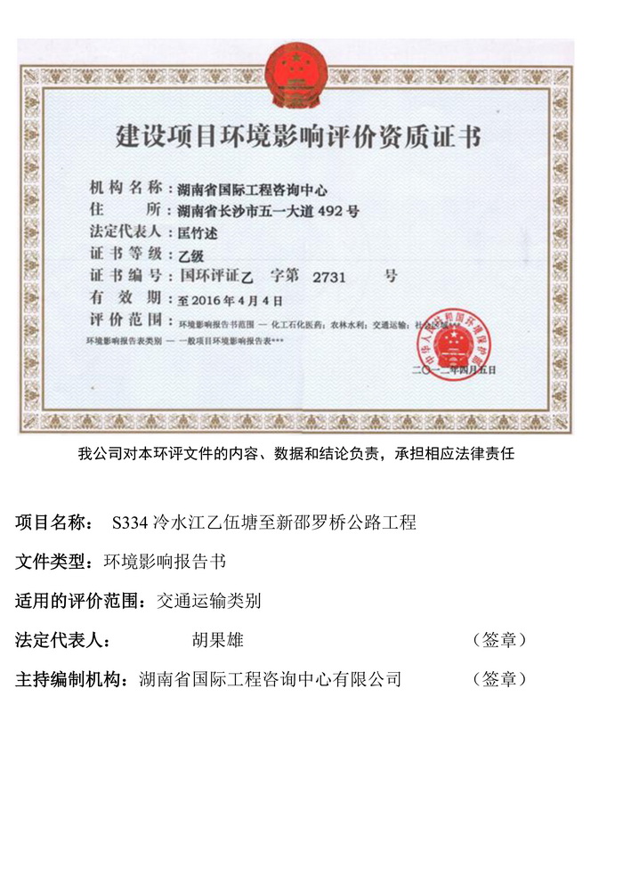 S334冷水江乙伍塘至新邵羅橋公路工程環(huán)評公示簡本