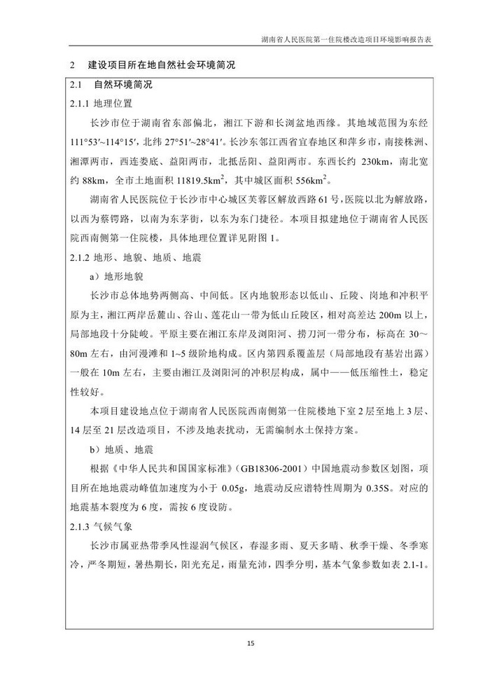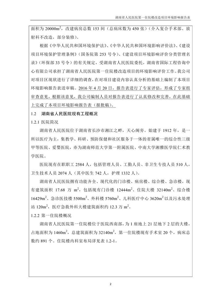 湖南省人民醫(yī)院第一住院樓改造項(xiàng)目環(huán)評(píng)報(bào)告表
