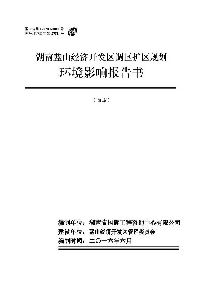 湖南藍山經(jīng)濟開發(fā)區(qū)調(diào)區(qū)擴區(qū)規(guī)劃環(huán)評簡本公示
