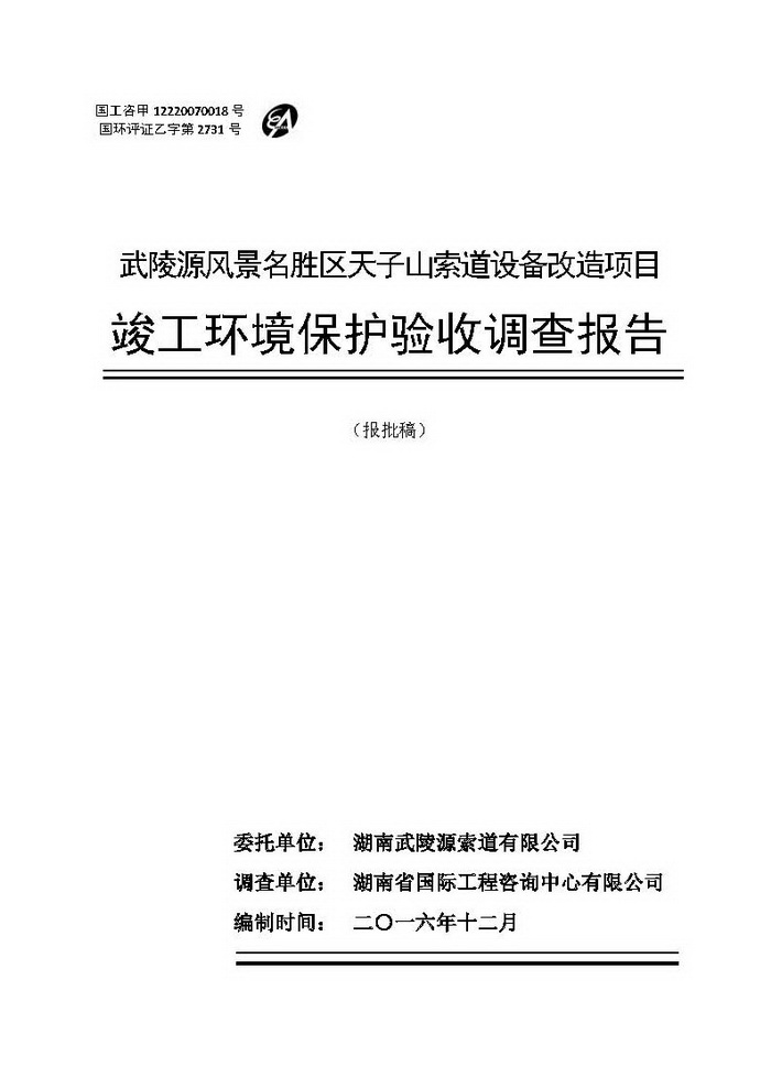 武陵源天子山索道設(shè)備改造駿工環(huán)保驗(yàn)收調(diào)查報(bào)告