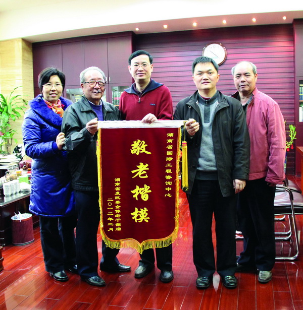 3月2日,省發(fā)改委機(jī)關(guān)離退休老干支部書記屈運(yùn)炳等老領(lǐng)導(dǎo),在省發(fā)改委離退處處長(zhǎng)何祖青、副處長(zhǎng)卜安春的陪同下來到中心,代表省發(fā)改委全體老干部將一面寫有“敬老楷?!钡腻\旗送到省發(fā)改委黨組成員、中心黨委書記、主任匡竹述手中,以感謝中心長(zhǎng)年來對(duì)老干部的關(guān)心和照顧。