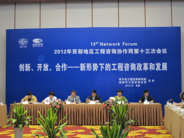 2012年10月10日,西部地區(qū)工程咨詢協(xié)作網(wǎng)第十三次會議在成都召開。來自西部地區(qū)的13家成員單位,以及國家發(fā)改委國家投資項目評審中心、中國國際工程咨詢公司等23家綜合性工程咨詢單位的特邀代表參會。中心黨委委員、總工程師王沛皇參加了會議。