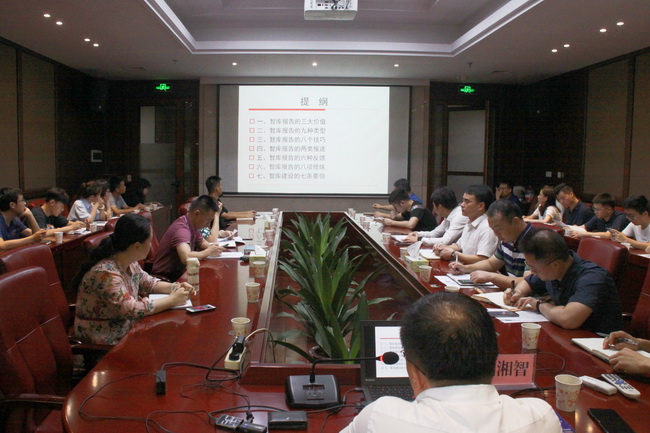 湖南省經濟建設與投資決策研究智庫是湖南省委宣傳部認定的專業(yè)特色智庫,隸屬于湖南省國際工程咨詢中心有限公司管理,智庫講座培訓的目的在于以高質量成果咨政輔政。周湘智作為湖南省智庫學研究基地首席專家、《決策參考·湖南智庫成果專報》執(zhí)行副主編、研究員,對內參型智庫課題有著敏銳的洞察力,對內參型智庫報告寫作有著豐富的實踐經驗。講座以報告理論模式與實務案例相結合的形式而展開,包括“智庫報告與學術論文的差別”“智庫報告的基本類型”“智庫報告的基本結構”“智庫報告的攥寫要求”四部分內容,生動的闡述了何為規(guī)范、高質量的內參型智庫報告,從精準的話題、精致的表達、鮮活的引言、精到的對策、精煉的篇幅、精美的外觀等六個方面剖析了一篇高質量智庫報告所具備的要素,與公司干部職工分享智庫課題研究與智庫報告寫作的技巧方法。講座的最后,周湘智為我司智庫建設與發(fā)展給出了中肯的建議和意見。