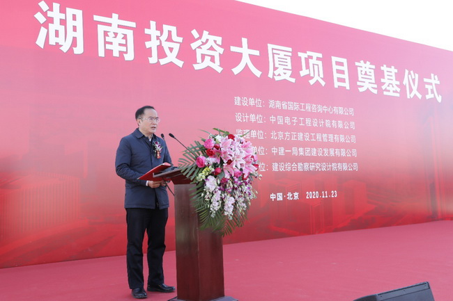 11月23日上午,(北京)湖南投資大廈項(xiàng)目奠基儀式在北京市豐臺區(qū)麗澤金融商務(wù)區(qū)隆重舉行。湖南省發(fā)展改革委黨組成員、湘西辦主任杜中華,湖南湘投控股集團(tuán)公司黨委書記、董事長鄧軍民,黨委副書記、董事張崇政,北京麗澤金融商務(wù)區(qū)管委會副主任關(guān)芳,北京麗澤金融商務(wù)區(qū)控股公司董事長楊友強(qiáng),湖南省國際工程咨詢公司黨委書記、董事長詹瓊雷,黨委副書記、總經(jīng)理曹雄鷹,中建一局(集團(tuán))有限公司副總經(jīng)理左強(qiáng),中建一局建設(shè)發(fā)展有限公司董事長廖鋼林等近百人出席奠基儀式。儀式由張崇政副書記主持。