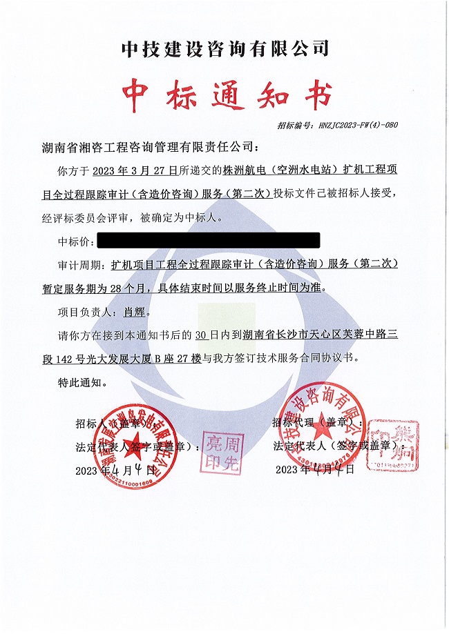 近期,我司下屬湖南省湘咨工程咨詢管理有限責(zé)任公司憑借強(qiáng)大的造價(jià)咨詢服務(wù)能力、綜合實(shí)力及良好的公司信譽(yù),連續(xù)中標(biāo)湘投國(guó)際衡東2×490MW級(jí)燃?xì)?蒸汽聯(lián)合循環(huán)發(fā)電工程、株洲航電(空洲水電站)擴(kuò)機(jī)工程等兩個(gè)全過(guò)程造價(jià)咨詢項(xiàng)目。