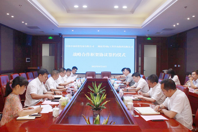 8月14日上午,湘咨集團(tuán)與中鐵中南投資發(fā)展有限公司(以下簡稱中鐵中南公司)舉行戰(zhàn)略合作協(xié)議簽約儀式。湘咨集團(tuán)黨委書記、董事長、總經(jīng)理詹瓊雷,中鐵中南公司總經(jīng)理陳國良出席座談并見證簽約,湘咨集團(tuán)董事、副總經(jīng)理伍玉勇與中鐵中南公司副總經(jīng)理黃文理分別代表雙方簽署戰(zhàn)略合作協(xié)議,雙方領(lǐng)導(dǎo)班子成員及相關(guān)部門負(fù)責(zé)人參加儀式。