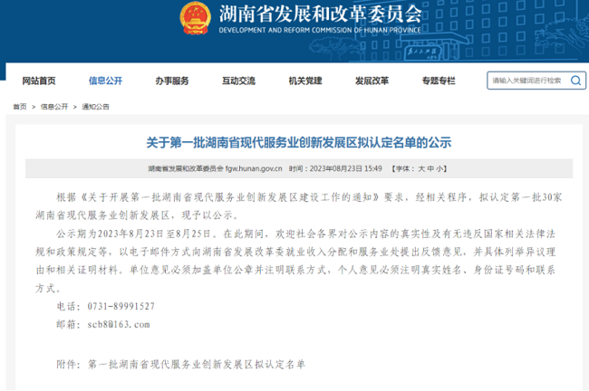 第一批湖南省現(xiàn)代服務業(yè)創(chuàng)新發(fā)展區(qū)擬認定名單