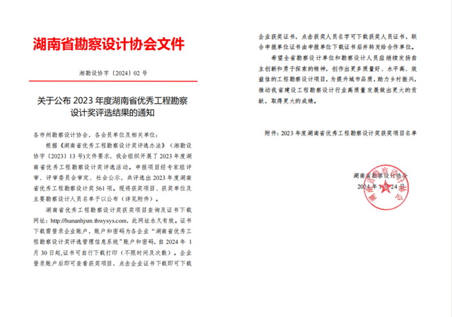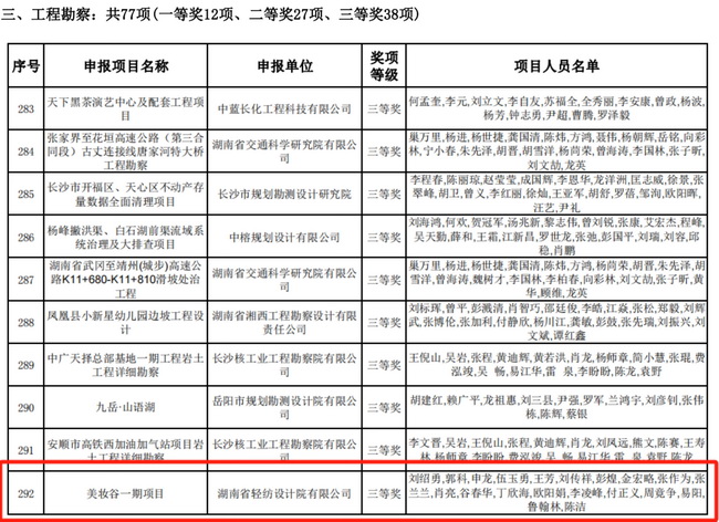 近期,省勘協(xié)公布了2023年度湖南省優(yōu)秀工程勘察設(shè)計(jì)獎(jiǎng)評(píng)選結(jié)果,湘咨集團(tuán)所屬省輕紡院共斬獲5項(xiàng)工程勘察設(shè)計(jì)獎(jiǎng)。其中,寧鄉(xiāng)經(jīng)開(kāi)區(qū)美妝谷一期項(xiàng)目、祁陽(yáng)科創(chuàng)產(chǎn)業(yè)綜合體及配套基礎(chǔ)設(shè)施建設(shè)項(xiàng)目1.2-1.3期工程榮獲建筑設(shè)計(jì)獎(jiǎng);湖南中煙工業(yè)有限責(zé)任公司郴州卷煙廠易地技術(shù)改造項(xiàng)目榮獲工業(yè)設(shè)計(jì)獎(jiǎng);寧鄉(xiāng)經(jīng)開(kāi)區(qū)美妝谷一期項(xiàng)目、長(zhǎng)沙市火車(chē)南站區(qū)域排水改造工程榮獲工程勘察獎(jiǎng)。