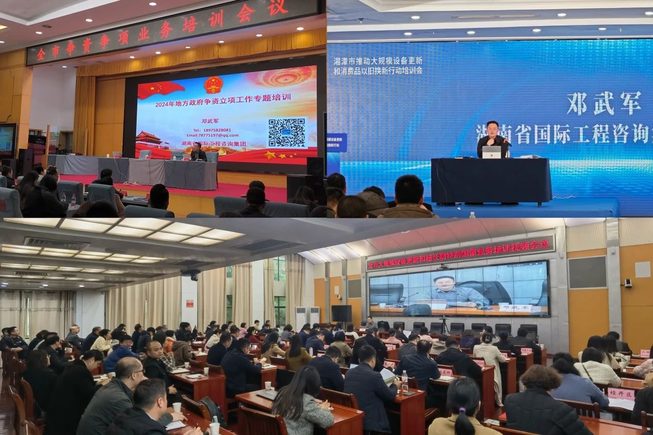 近日,應(yīng)郴州市、衡陽市、湘潭市等省內(nèi)多個(gè)市州邀請(qǐng),湘咨集團(tuán)生態(tài)規(guī)劃咨詢事業(yè)部總經(jīng)理、高級(jí)工程師鄧武軍專家赴各地解讀超長(zhǎng)期國(guó)債和大規(guī)模設(shè)備更新和以舊換新相關(guān)政策。