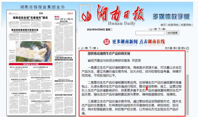 2024年1月,中共中央、國(guó)務(wù)院發(fā)布了《關(guān)于全面推進(jìn)美麗中國(guó)建設(shè)的意見(jiàn)》,明確“健全生態(tài)產(chǎn)品價(jià)值實(shí)現(xiàn)機(jī)制”的目標(biāo)任務(wù)。建立健全生態(tài)產(chǎn)品價(jià)值實(shí)現(xiàn)機(jī)制,是貫徹落實(shí)習(xí)近平生態(tài)文明思想的重要舉措,是踐行綠水青山就是金山銀山理念的關(guān)鍵路徑。為積極踐行“綠水青山就是金山銀山”理論,貫徹落實(shí)好習(xí)近平生態(tài)文明思想,省政協(xié)十三屆二次會(huì)議上提出“探索建立生態(tài)產(chǎn)品價(jià)值實(shí)現(xiàn)機(jī)制,讓綠水青山成為美麗湖南的金山銀山”。